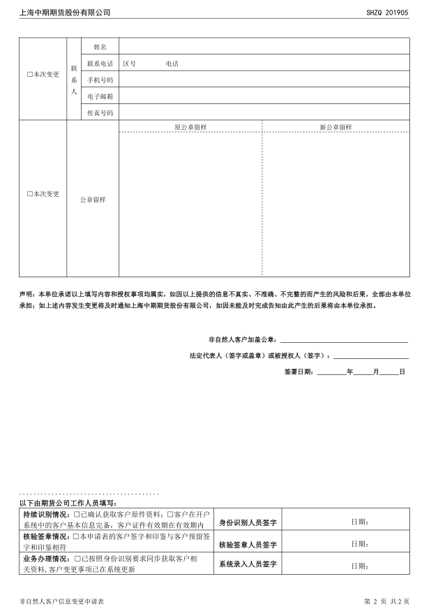 非自然人客戶資料變更申請表